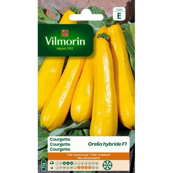 Dit is een heel originele variëteit Courgette Orélia met opvallende gele vruchten met uitstekend smakend vruchtvlees. Zeer gemakkelijk te telen dankzij de goede ziekteresistentie.