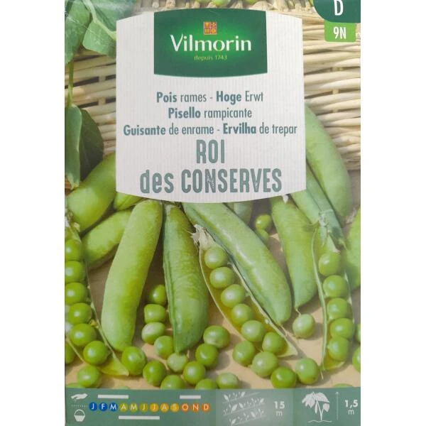 Hoge erwt Roi des Conserves is een heel productieve variëteit met fijne zaden. De peulen zijn licht gebogen en hebben elk 8 à 10 zaden. Ze worden best geoogst als de peulen goed mals zijn.