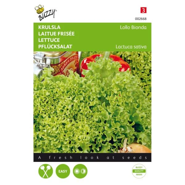 Krulsla, ‘Lollo bionda’ is een krulsla type welke geen krop vormt, maar een open bladrozet met sterk ingesneden malse bladeren. Snel groeiend. Het blad is heldergroen van kleur, dat er ook nog aantrekkelijk uitziet. De planten schieten niet snel in bloei.