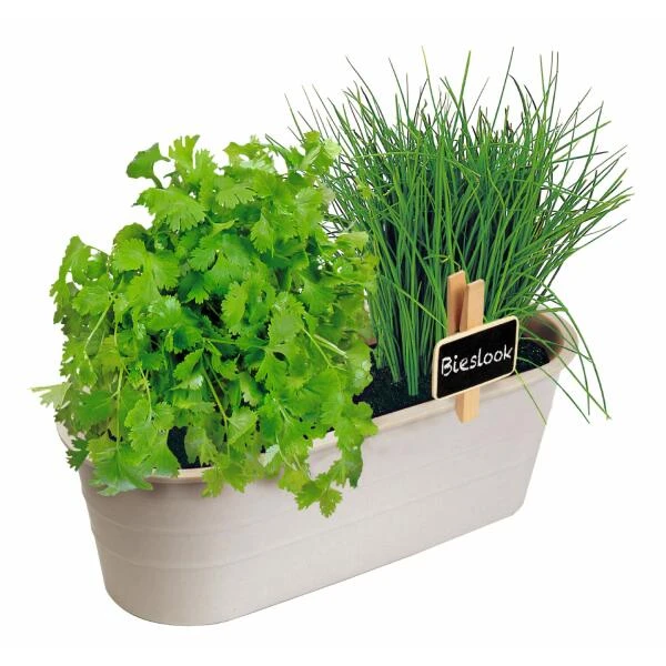 Jouw eigen biologische kruidentuintje, ideaal voor op de vensterbank. Het bakje is vervaardigd van bamboepoeder en is daardoor geheel afbreekbaar. Het kweekset wordt geleverd met potgrond en twee zakjes met zaden van bieslook en bladkoriander waarmee je een oosterse toest kan geven aan jouw gerechten.