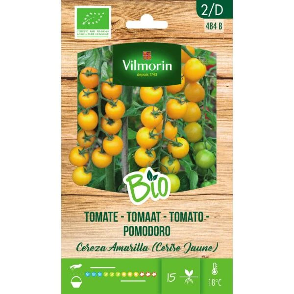 Kweek je eigen overheerlijke gele kerstomaten, volledig biologisch met de kwalitatieve zaden van Vilmorin. Tomaat Gele Kers vormt mooie, ronde kerstomaten met een gele kleur. Ze zijn perfect geschikt voor salades.