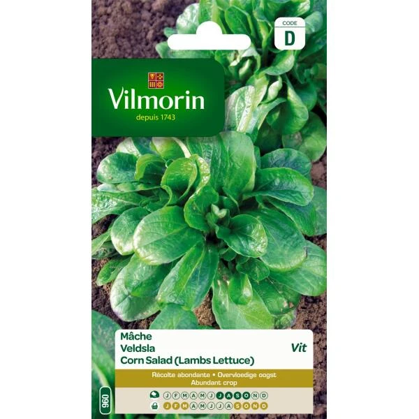 Deze zeer vroege en zeer productieve variëteit Veldsla Vit produceert mooie ronde blaadjes met een uitstekende smaak. Zeer gemakkelijk te telen dankzij de goede weerstand tegen ziektes en vorst. Veldsla is rijk aan chlorfyl, vitamines (A, B en C) en mineralen (calcium en kalium).