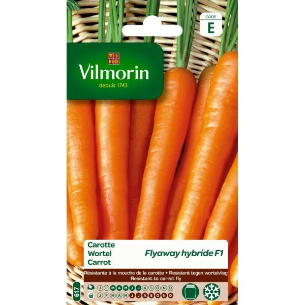 De wortelvliegen gaan dan hun eitjes afleggen bij het andere ras en Fly Away HF1 blijft gespaard. Fly Away HF1 levert cilindrische en regelmatige wortelen met een zacht en smaakvol vruchtvlees.